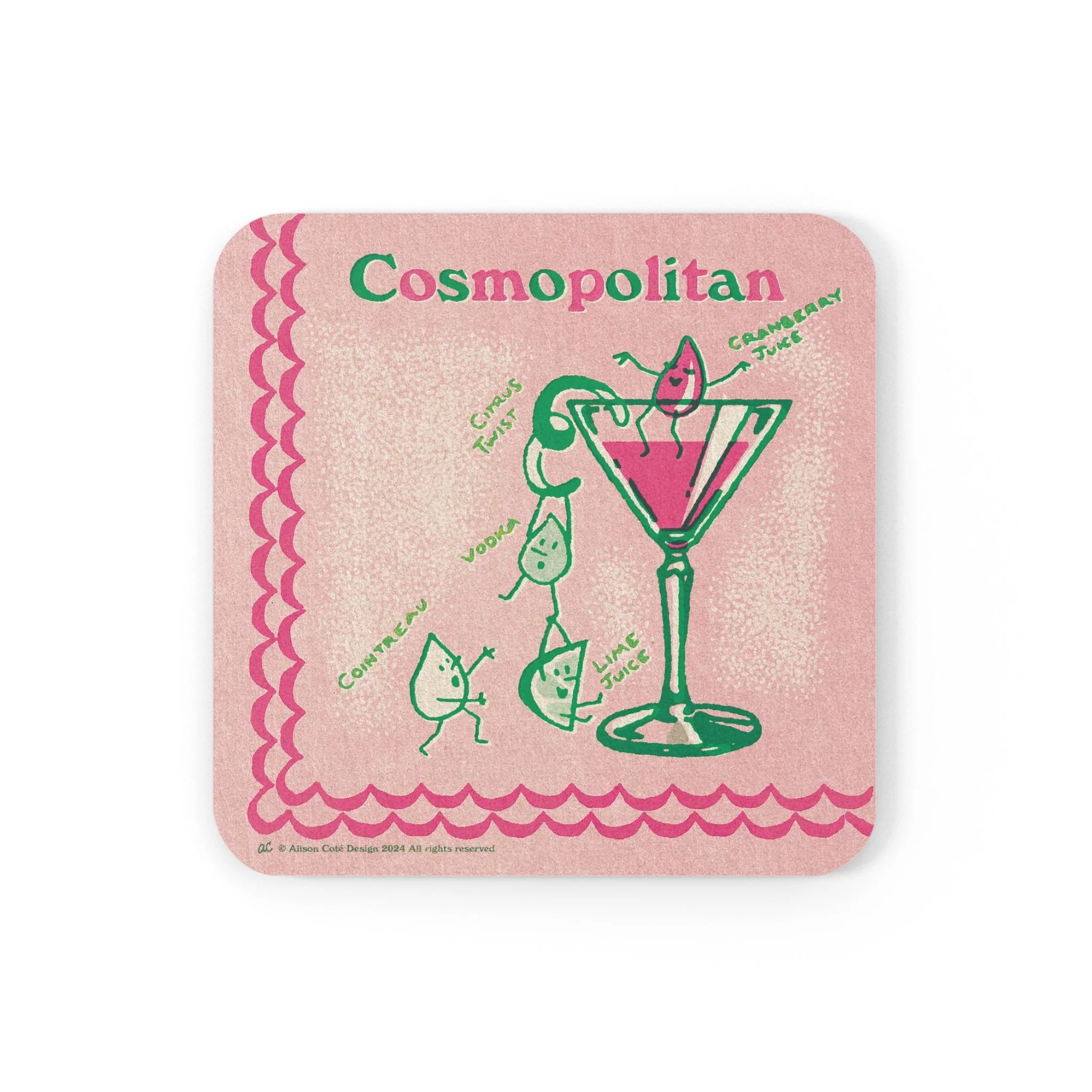 A vintage-inspired coaster featuring Alison's cartoonized 1920s-style illustration of an Old Fashioned cocktail. Perfect for adding a touch of retro charm to your bar, these coasters are ideal for cocktail enthusiasts and fans of vintage decor. Great for decorating a home bar or adding a playful element to a kitchen or dining area. Ideal for gifting during the holiday season or as a housewarming gift for the cocktail lover in your life! With each order you 1 coaster, made with a high-gloss top and feature a cork back to prevent sliding.